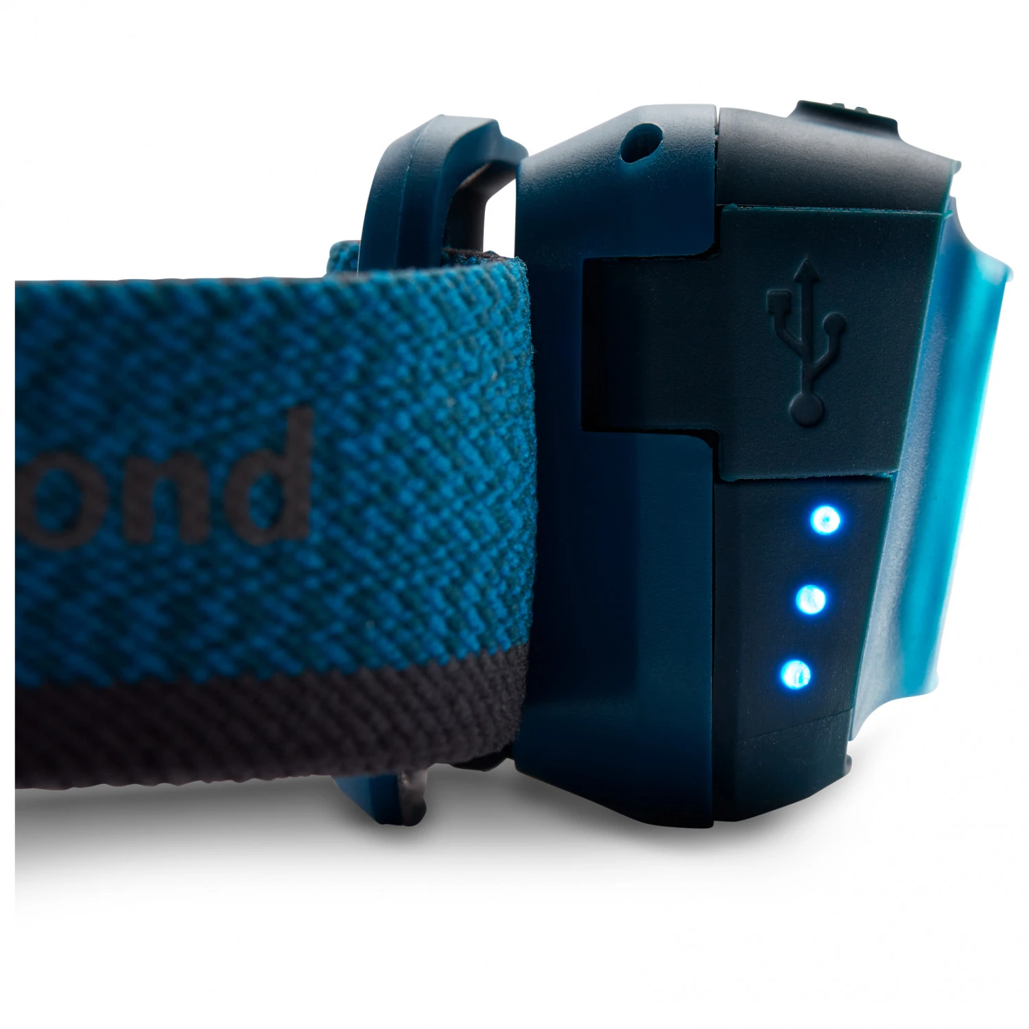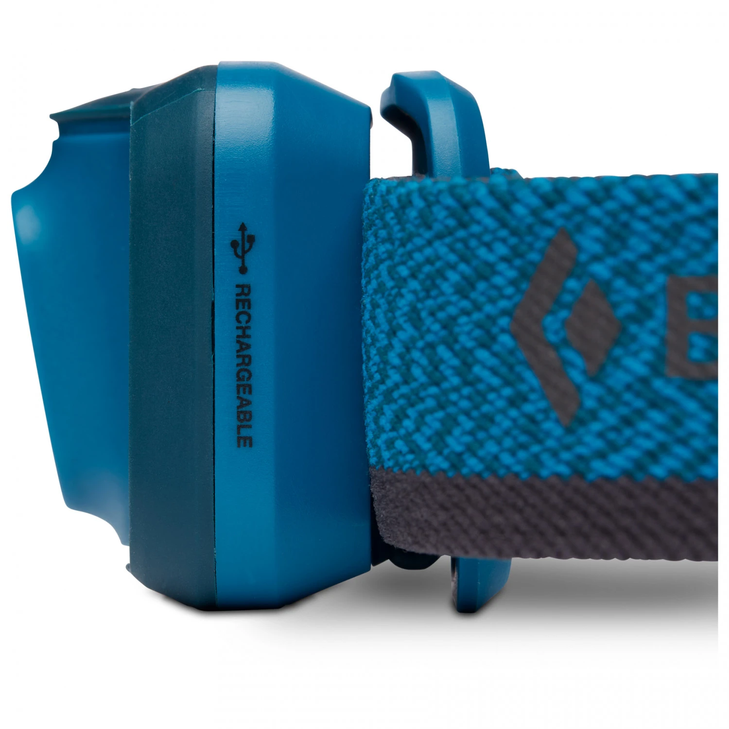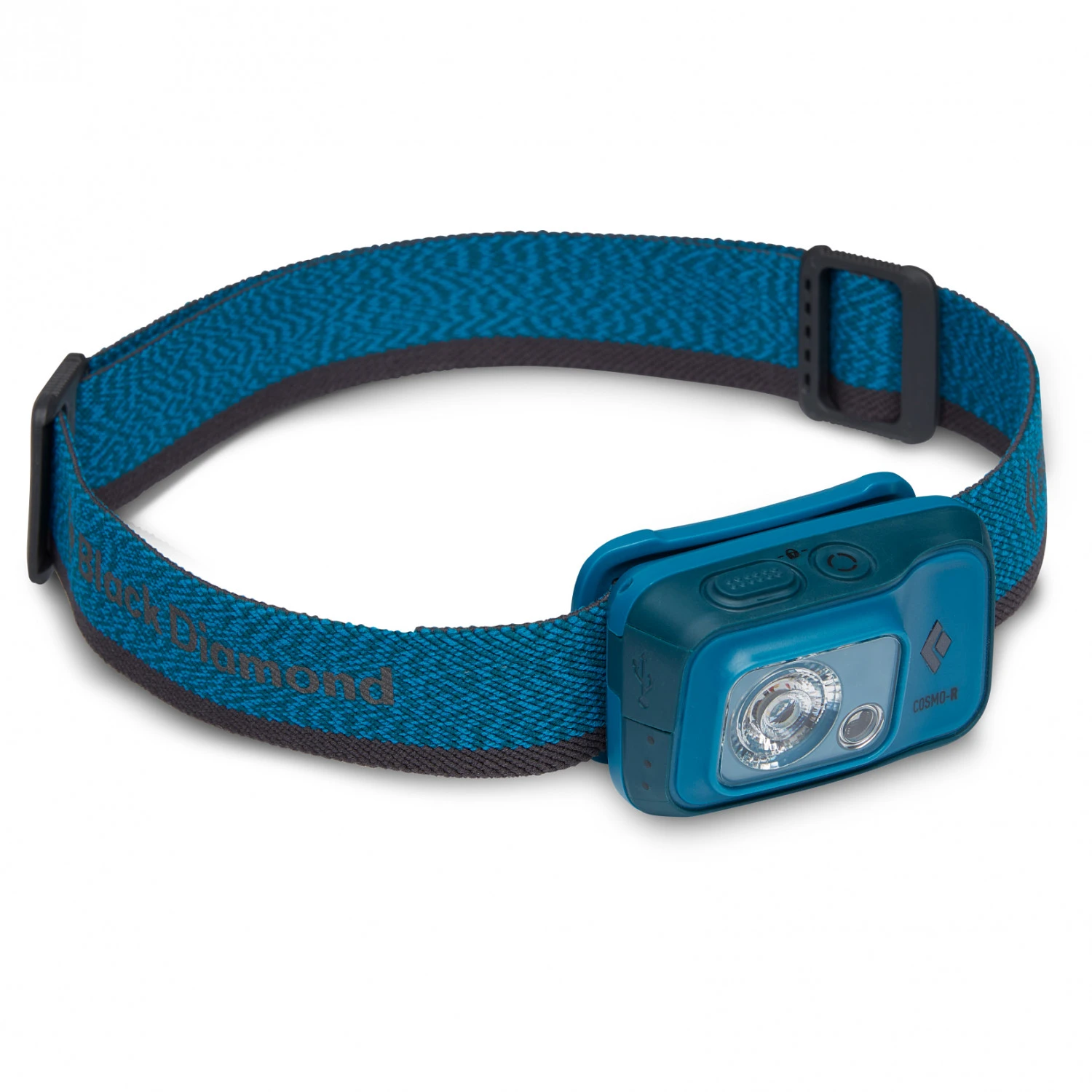 Die wiederaufladbare Stirnlampe Cosmo 350-R von Black Diamond ist perfekt für Campingabenteuer, für Vorhaben rund ums Haus und den Garten und andere Ausflüge in die Natur. So hat man beim Ausleuchten der Umgebung in jeder Situation beide Hände frei. Die Stirnlampe zeichnet sich durch ein Fernlicht, ein Nahlicht. einen Nachtlichtmodus, eine Dimmfunktion und ein Blinklicht aus. Über zwei Tasten kann der gewünschte Modus eingestellt werden.