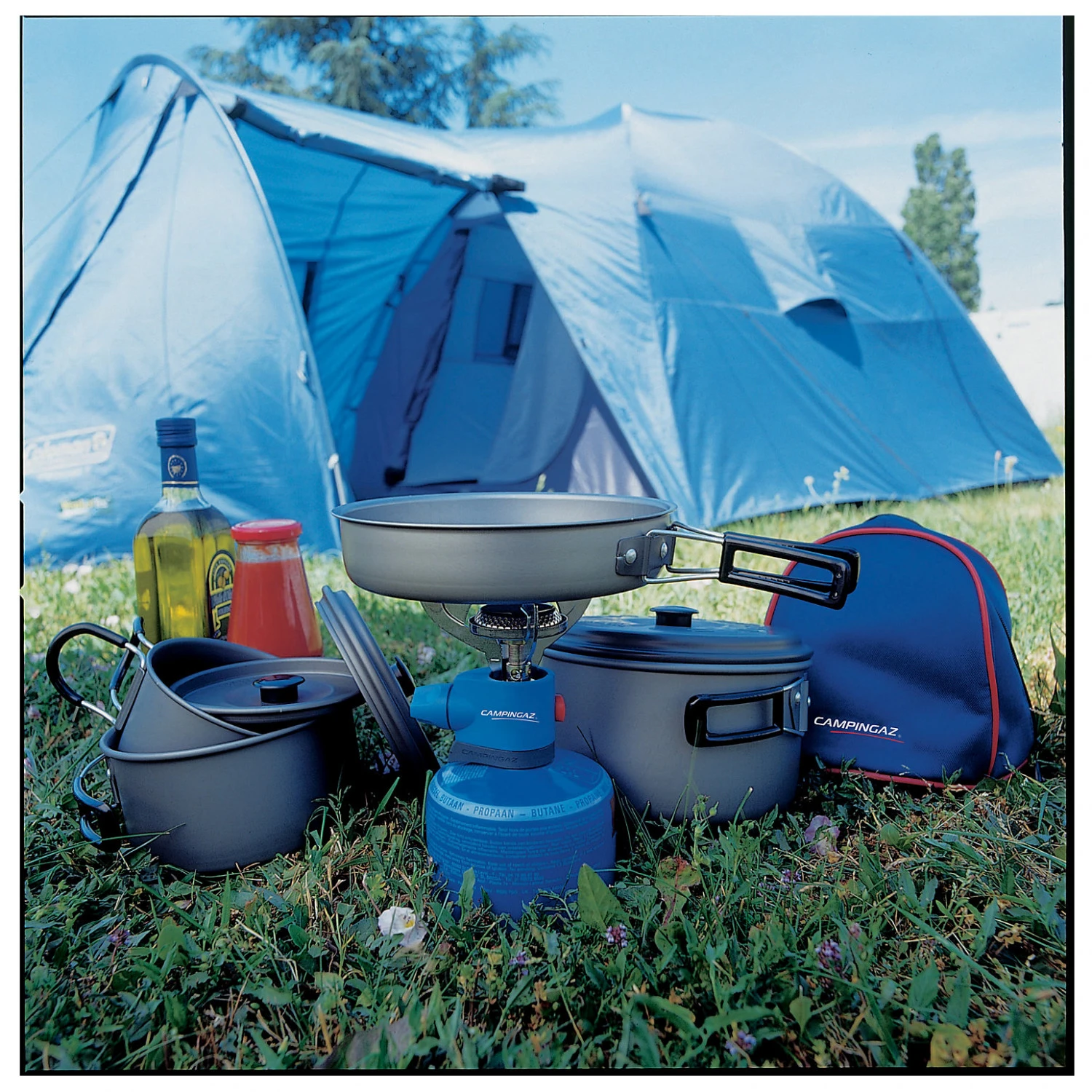 Das Geschirr-Set Eloxiert von Campingaz ist ein robustes und kompaktes Set, das sich hervorragend zum Reisen, Trekken und Campen eignet. Es zeichnet sich außerdem durch sein geringes Gesamtgewicht aus und kann bei Nichtgebrauch mit seinem geringen Packmaß platzsparend verstaut werden.
