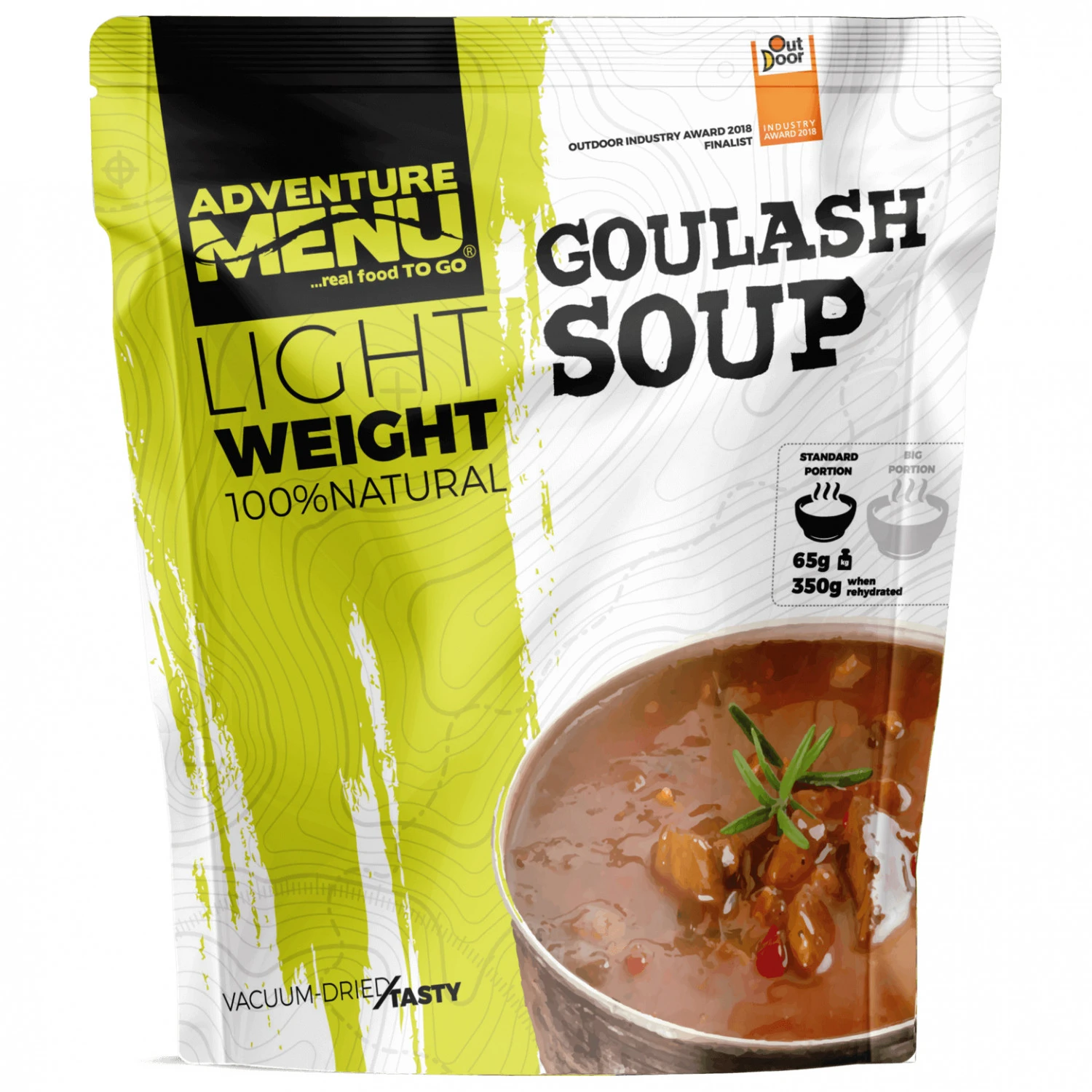 Ideal zum Aufwärmen von innen: die Goulashsoup von Adventure Menu! Die deftige, dicke Gulaschsuppe enthält nahrhafte Kartoffeln, Rindfleisch, Paprika und und Zwiebeln und ist lecker mit Gewürzen abgeschmeckt. Einfach Wasser zugeben, kurz ziehen lassen und genießen!
