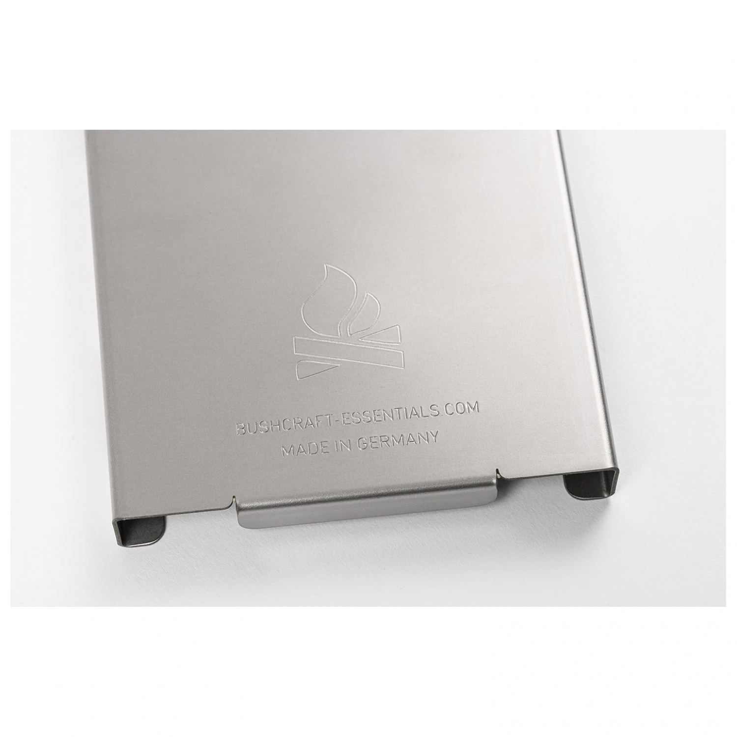 Das Multifunktions-Einschubgehäuse aus Titan liefern Bushcraft Essentials als sensationell leichtes (nur 90g!) Zubehör zum Bushbox LF-Hobokocher. Die zerlegte Bushbox lässt sich kinderleicht in dem Gehäuse verstauen und ist dann sauber, kompakt und platzsparend transportierbar. In der Wildnis kannst Du das Einschubgehäuse als Arbeitsunterlage beim Schneiden von Feathersticks nutzen, aber es dient auch als stabile Unterlage für den Kocher, gern auch auf unebenen Untergründen wie Sand oder Schnee.