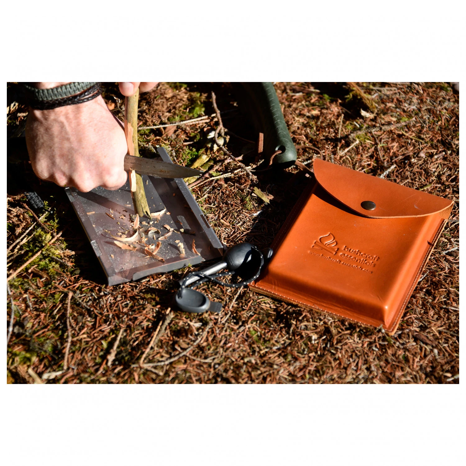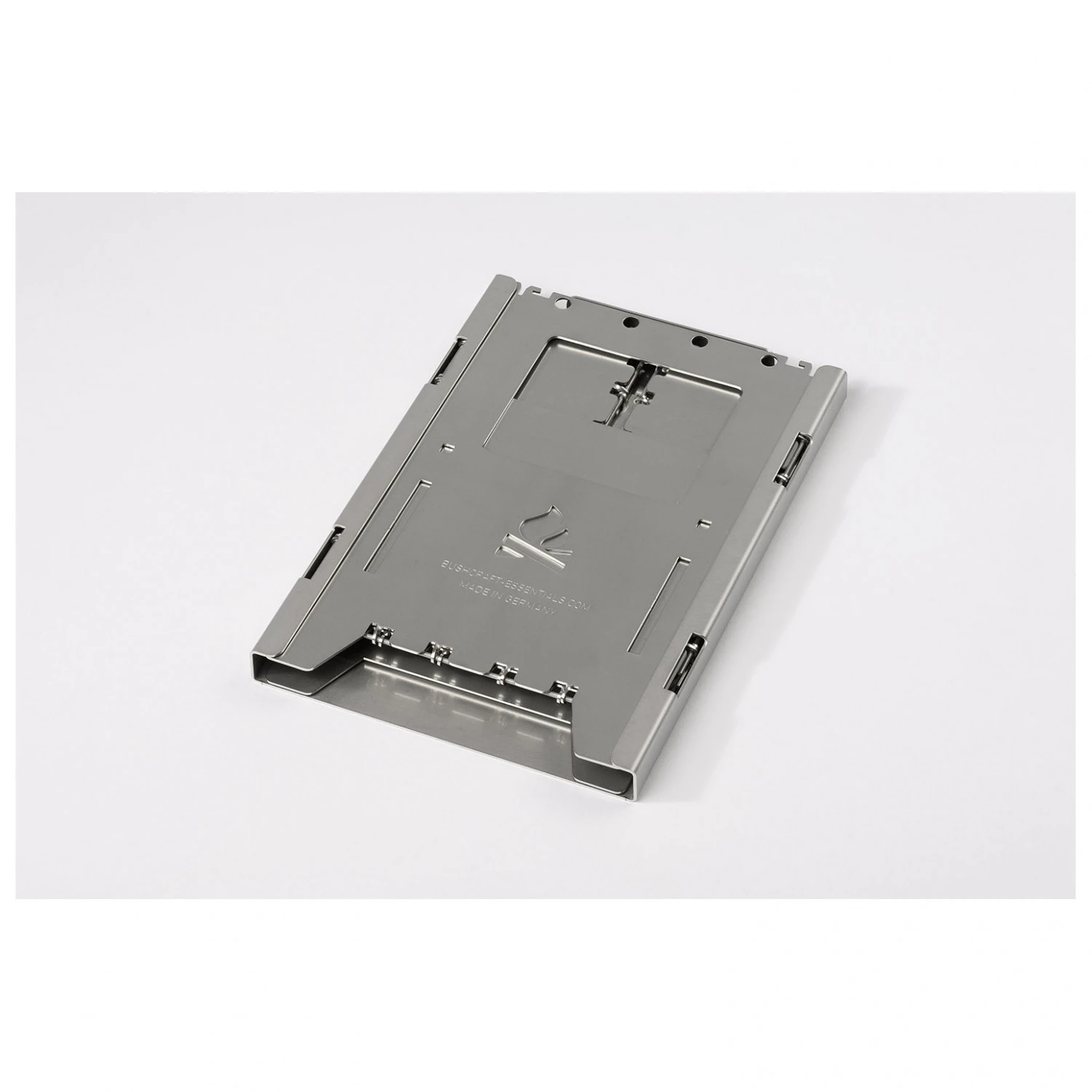 Das Multifunktions-Einschubgehäuse aus Edelstahl liefern Bushcraft Essentials als Zubehör zum Bushbox XL-Hobokocher. Die zerlegte Bushbox lässt sich kinderleicht in dem Gehäuse verstauen und ist dann sauber, kompakt und platzsparend transportierbar. In der Wildnis kannst Du das Einschubgehäuse dann als Arbeitsunterlage beim Schneiden von Feathersticks nutzen, aber es dient auch als stabile Unterlage für den Kocher, gern auch auf unebenen Untergründen wie Sand oder Schnee.