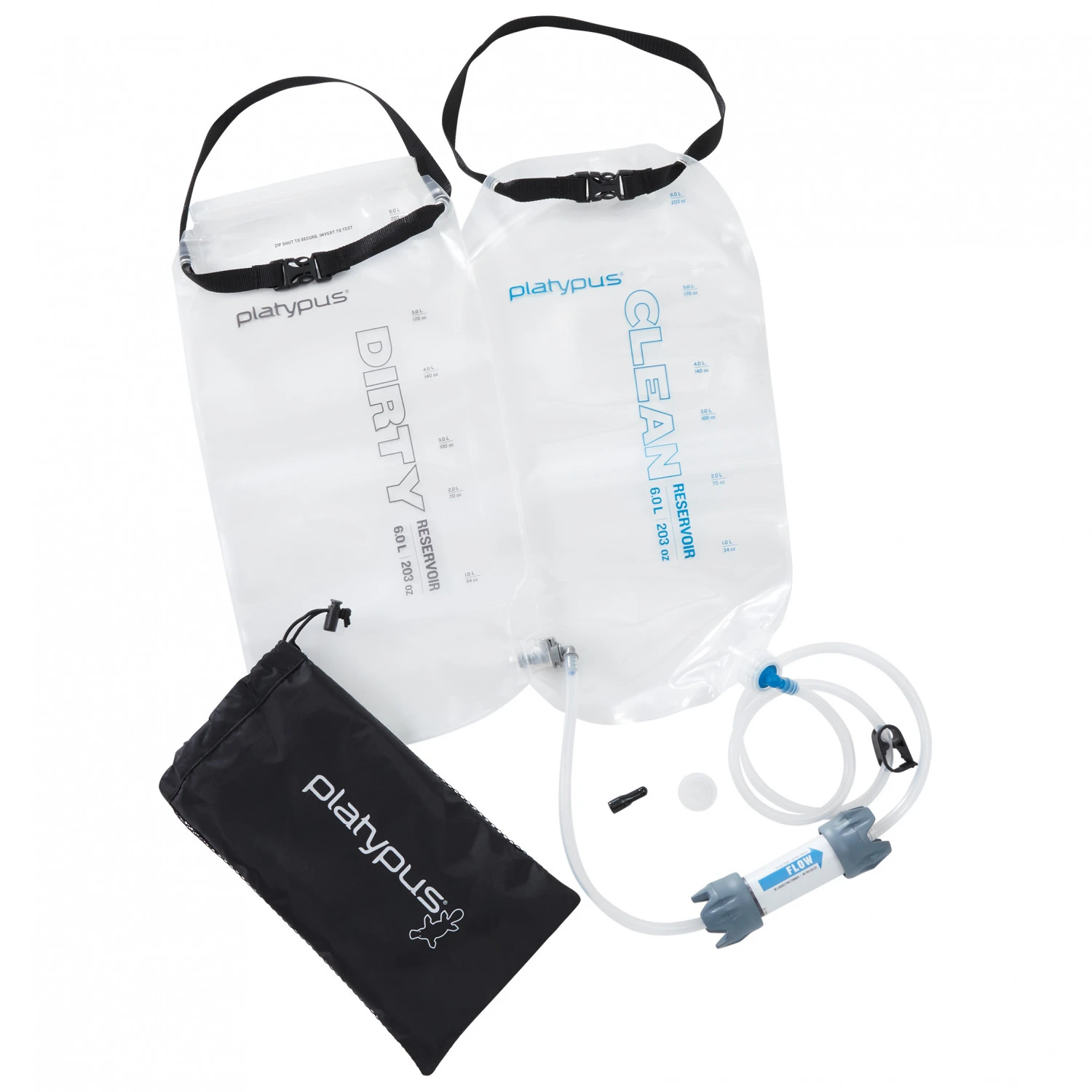 Mit dem Platypus Filter-System Gravity Filter 6 Complete kann man Wasser sammeln, filtern, transportieren und bereithalten. Dank breiter Öffnung lässt es sich leicht befüllen. Außerdem muss nicht gepumpt werden, denn die Schwerkraft erfüllt das Übrige. Bakterien und Protozoen bleiben in den Hohlfasern hängen und werden dadurch aus dem Wasser herausgefiltert. Man kann mit dem System bis zu 12 Liter Wasser für größere Gruppen oder Zeltlager speichern. Außerdem kann man es schnell und einfach ausspülen, um die Durchflussrate des Filters wieder herzustellen.