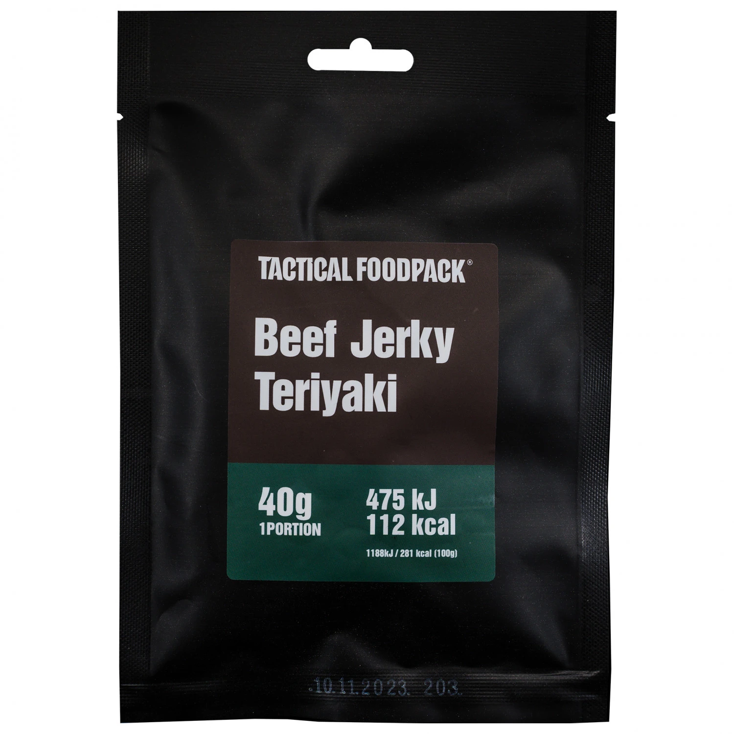 - Beef Jerky Beef Teriyaki: Nettogewicht 40 g, Energiegehalt pro Portion 112,4 kcal