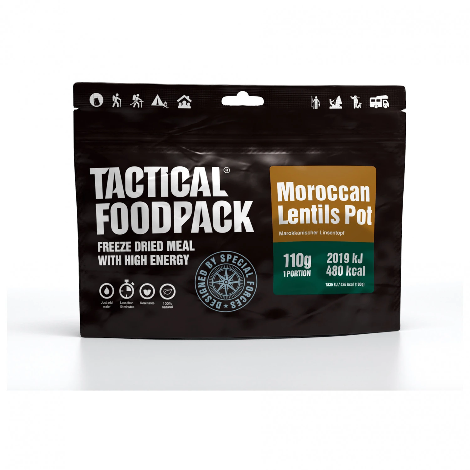 - Marokkanische Linsen Topf: Nettogewicht 110 g, Energiegehalt pro Portion 480 kcal