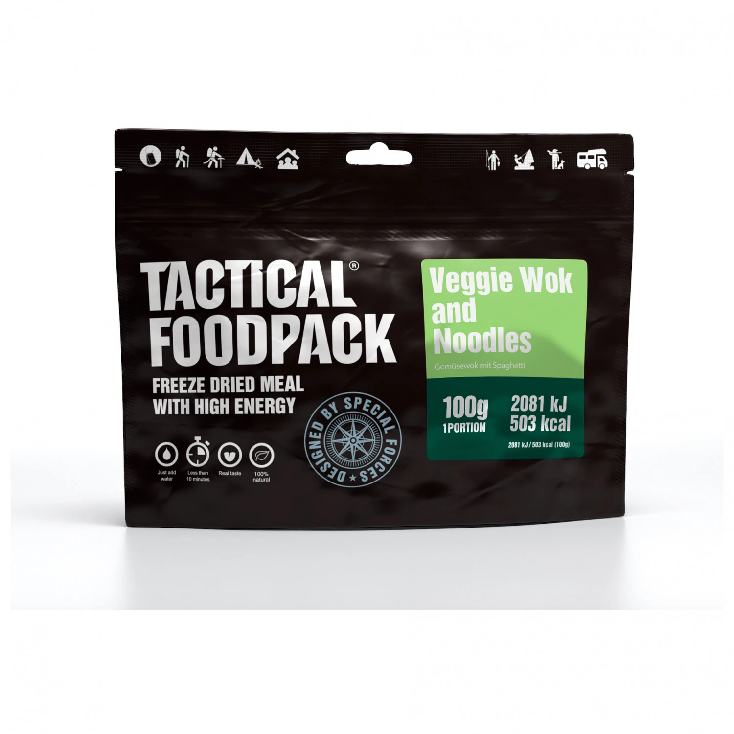 - Veggie Wok und Nudeln: Nettogewicht 100 g, Energiegehalt pro Portion 503 kcal