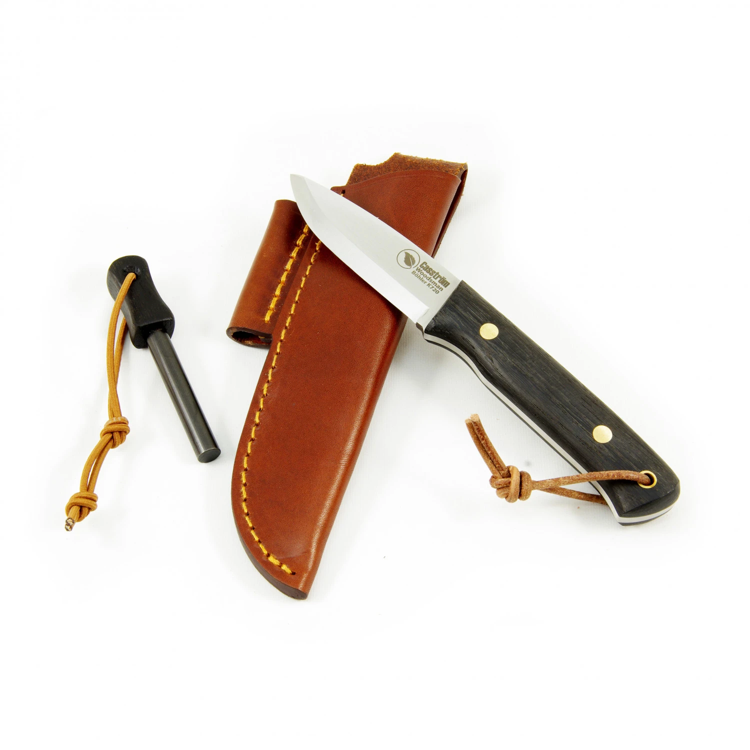 Das Woodsman von Casström ist ein optisch wie funktionell überzeugendes Messer für den Bushcraft Einsatz. Die Klinge aus Carbonstahl ist besonders hart und kann daher auch zum Holzspalten und andere Material-beanspruchende Arbeiten genutzt werden. Der Griff aus ca. 5000 Jahre alter Mooreiche sorgt für eine gewisse Eleganz und liegt besonders angenehm in der Hand. Für den sicheren Transport liegt eine edle Lederscheide bei.